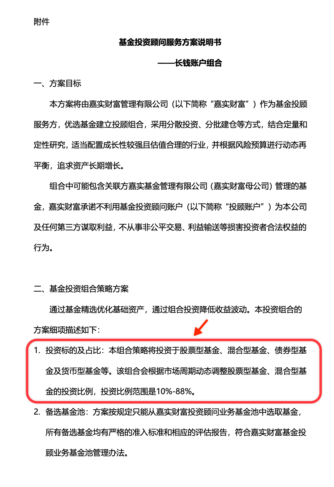 长钱账户的投入流程里,你可能很少点开过《投资组合策略方案说明书》。(图一)在策略方案一节中,长钱账户就写明了它的核心框架: