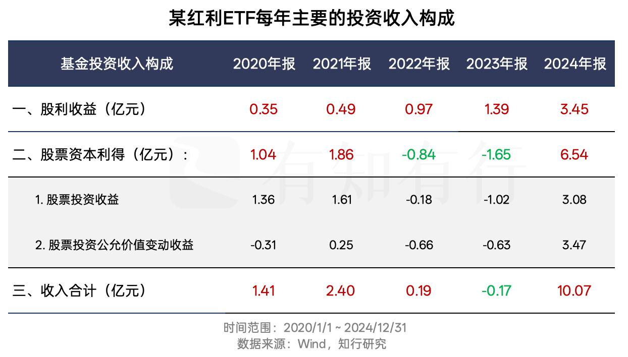 我们看一下某红利ETF每年主要的投资收入构成。