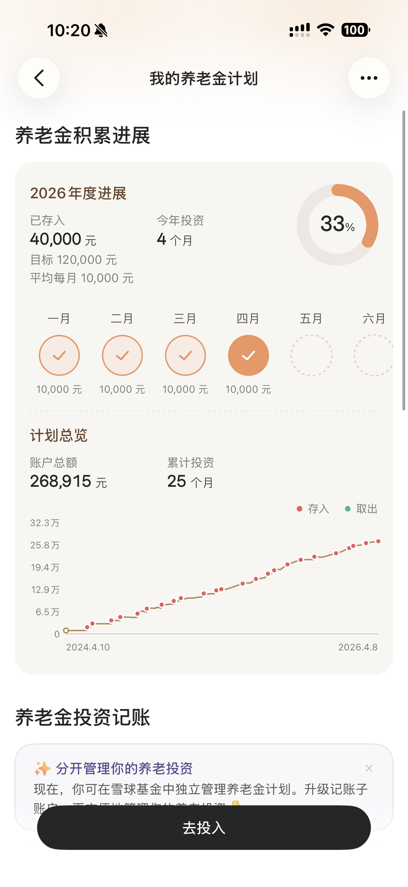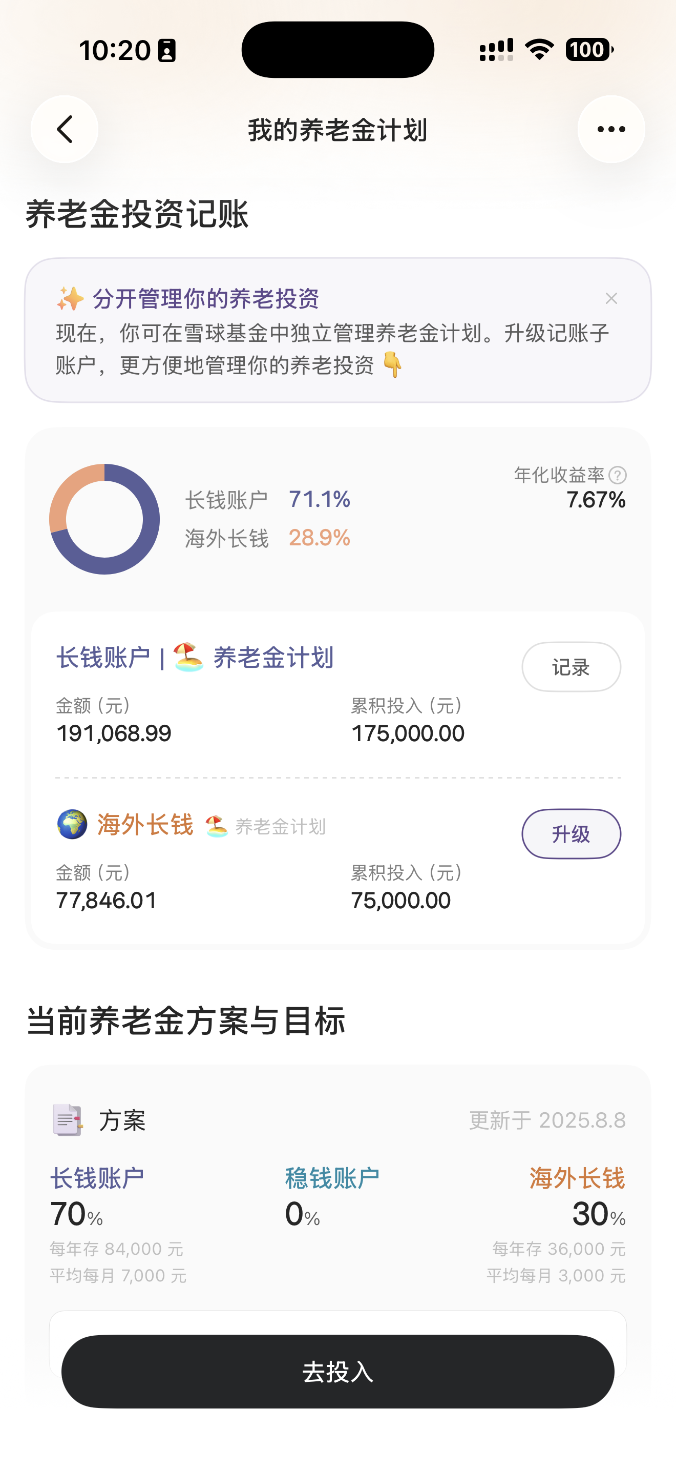 养老金计划(每月 7000 长钱,3000 海外长钱)目前共投入 25 个月。