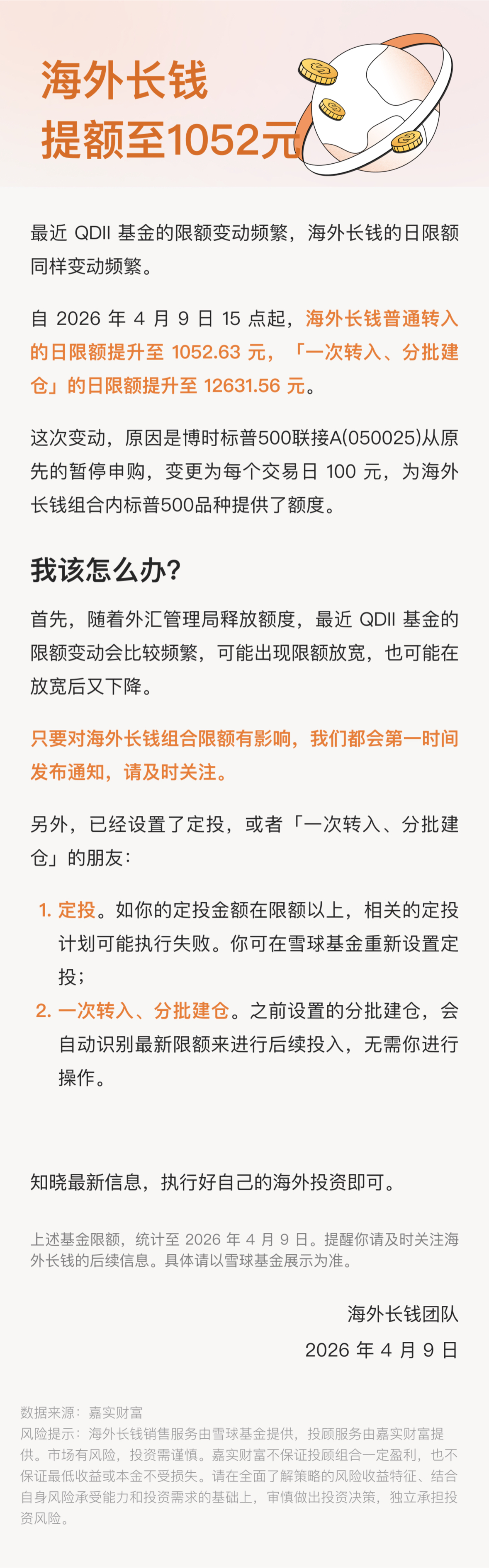 额度又又又调整了😂最近 QDII 基金的限额变动会比较频繁,大家记得及时关注。