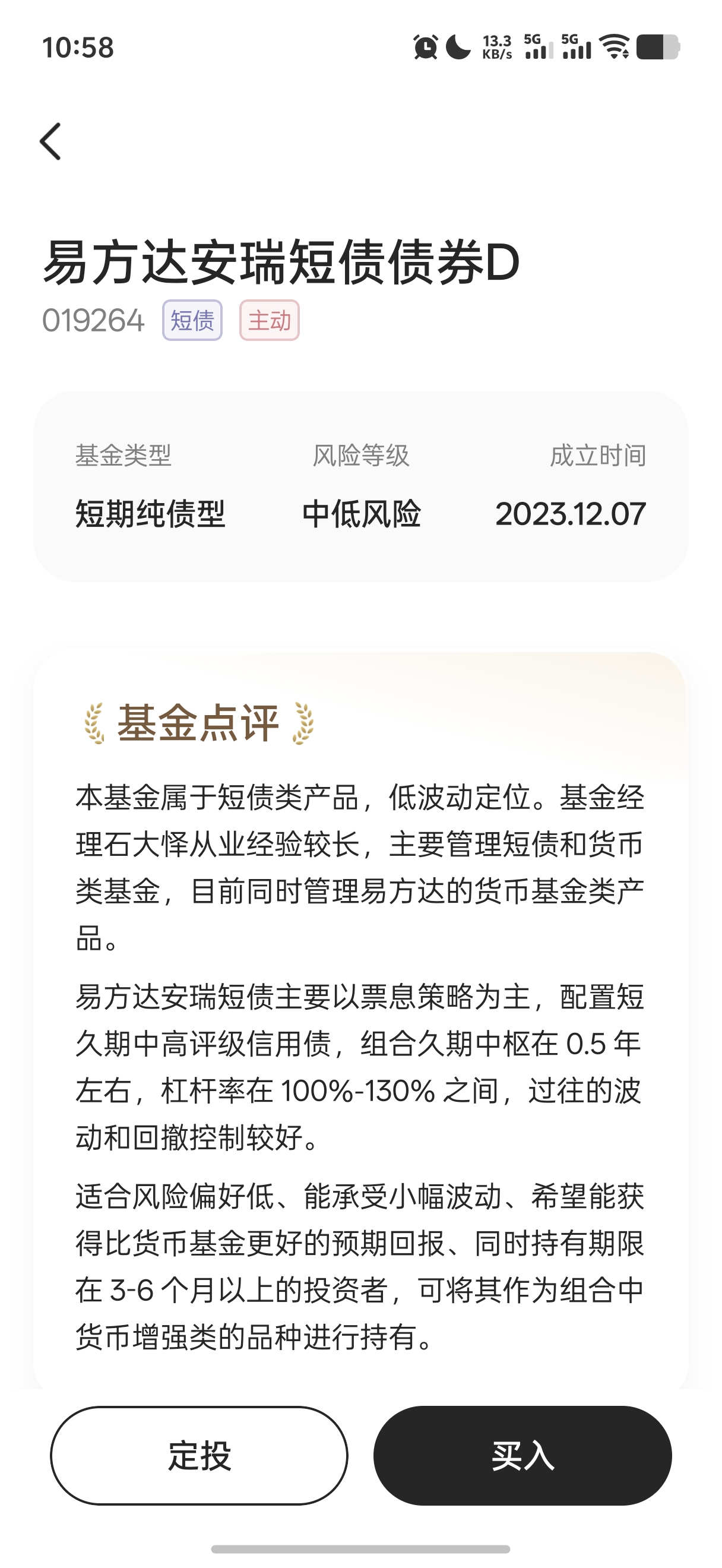 短债基金适合管理半年到一年内想用的钱,比如一笔旅行预算、用来应急的生活备用金等。相应地,它的流动性就比货币基金弱,建议持有 6 个月以上。