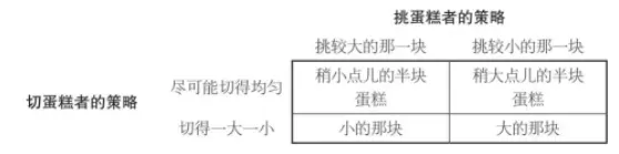因此,切蛋糕的孩子只能选择尽量均分蛋糕,以保证获得差不多的半块蛋糕。