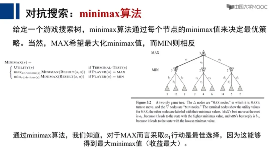 通过穷举不同玩家之间的策略,该算法可以构建一棵搜索树,并通过穷举不同的可能,选择其中能得到最佳结果的路径。