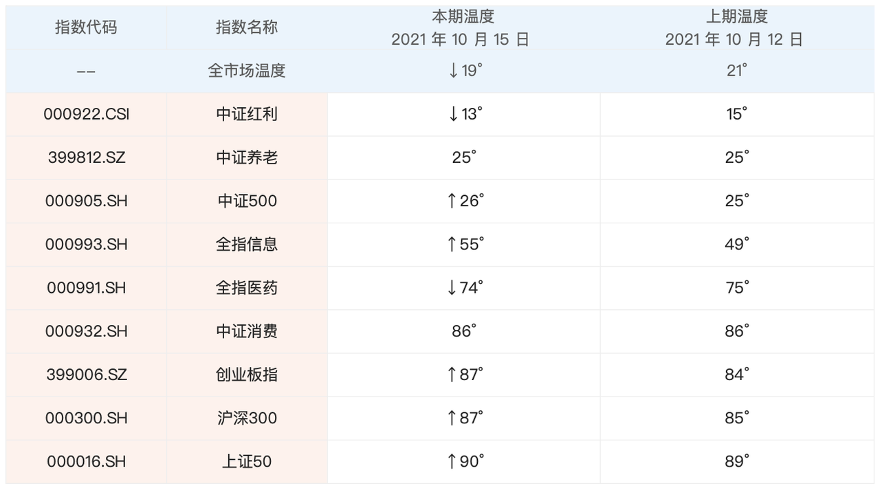 10 月以来股市整体表现不佳,上周五全市场温度重新回到了 20° 以内,触发了临时发车信号。