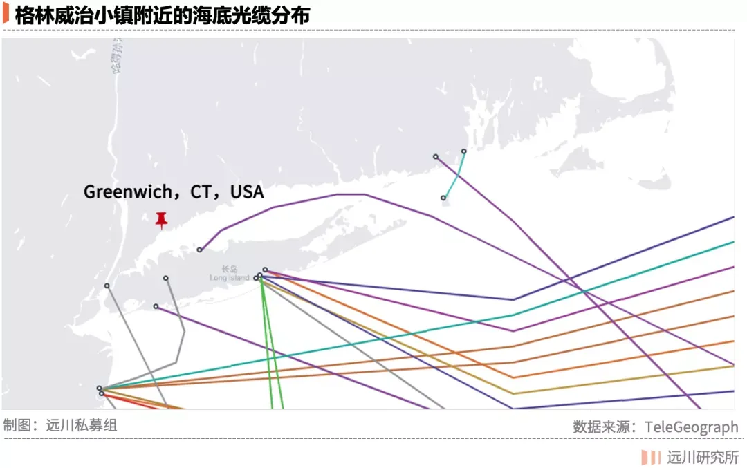分秒必争的量化基金在办公室选址时有两个核心考量:要么把公司设置在交易所旁边,要么搬到离海底光缆比较近的地方。后者使得康涅狄格州的格林威治小镇成为了对冲基金的天堂,也让这个人口只有 7 万的十八线小城创造了人均收入 903 万美元的神话[15],实现了统计学意义上的共同富裕。