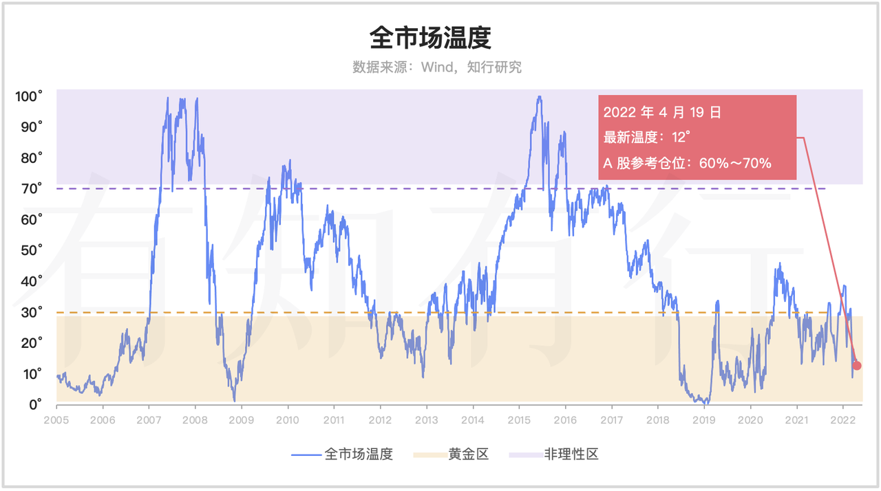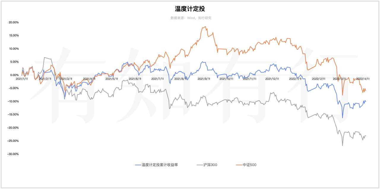 其实关于定投,我们平时说的很少。App 里介绍了为什么定投沪深300和中证500,温度计在定投里发挥了什么样的作用,我们知行研究写了一个定投的系列专题,除此之外,并没有随着市场涨跌,去进行太多的解读。