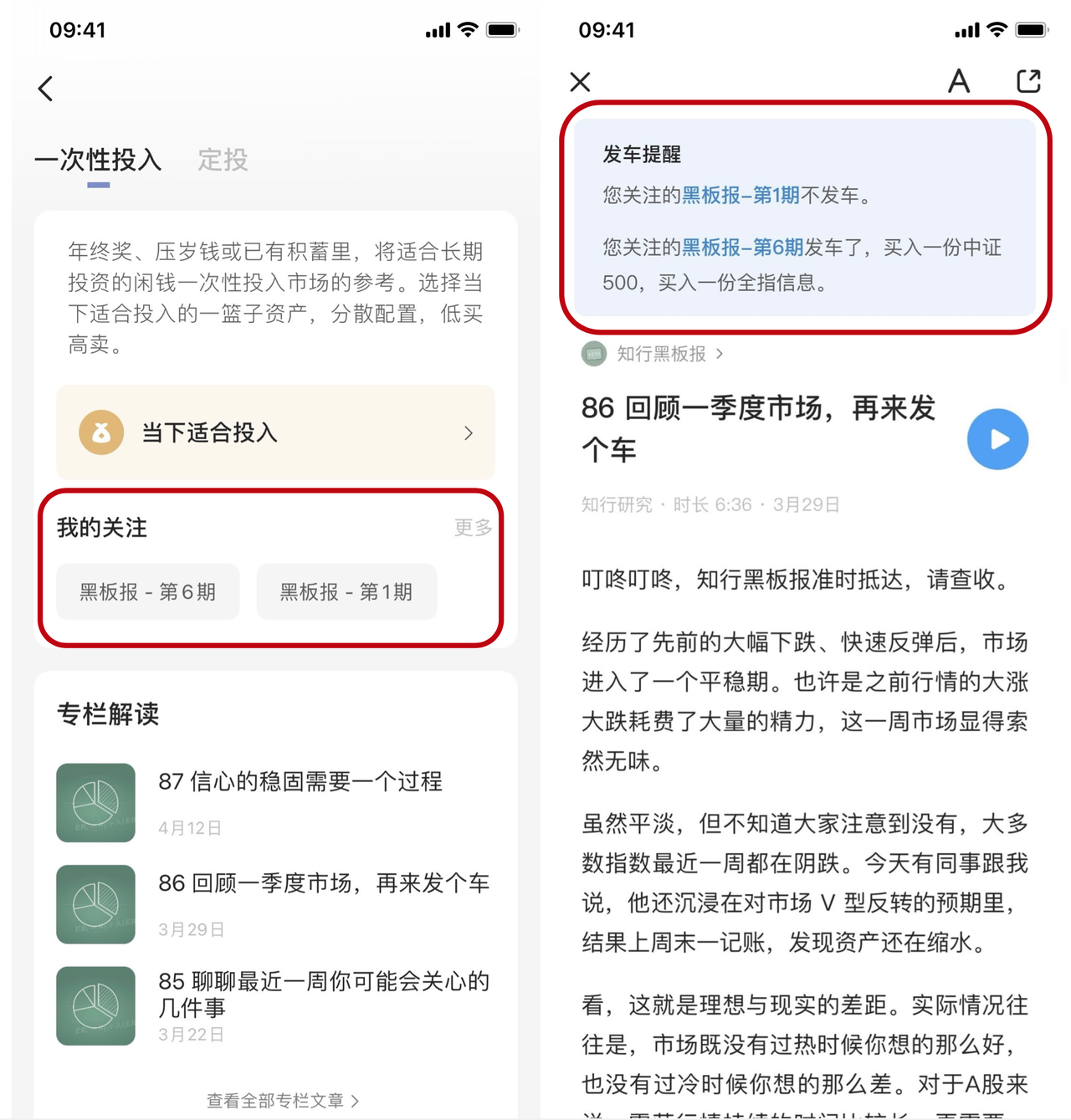 之前参考黑板报往期产品的用户,这次新增了一个关注功能。如果你关注了某一期黑板报,每周二黑板报专栏发布时,在文章最上方就可以立即查看是否有发车信号,操作起来会方便很多。