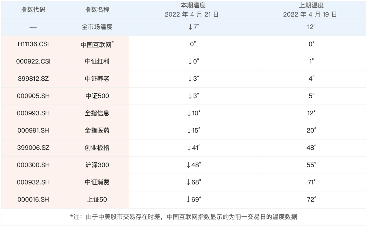 昨天全市场温度达到了 7°,是有知有行温度计上线以来的最低温度,再往下跌一跌,就回到了 2018 年底的水平了。一般经济基本面、资金面、情绪面都比较悲观的时候,市场底部会容易形成。