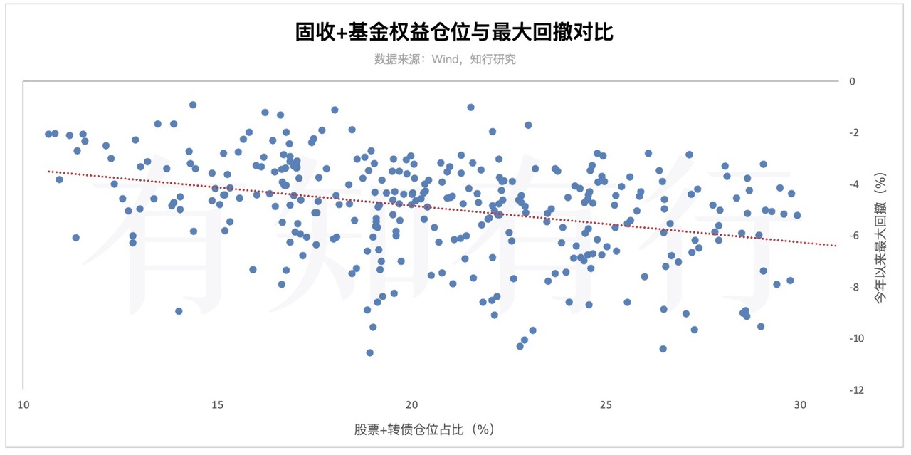 下面是我们按照新的要求梳理的名单,看了一下它们在今年的最大回撤情况,还是能明显看出来,权益仓位越高,回撤越大。
