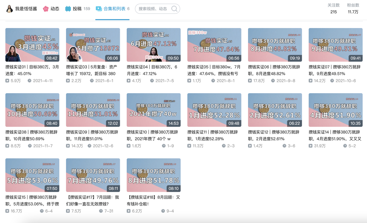 从去年 4 月起,恬恬酱开始在 B 站上更新一个主题为「攒够 380 万就辞职」的系列视频,记录夫妻二人攒钱路上的酸甜苦辣。在大数据的指引下,我们刷到了他们的视频,立马就被吸引住了。