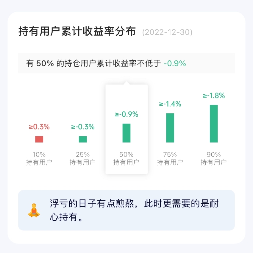 之前有用户留言,去年底在跟自己的丈母娘解释「我要稳稳的幸福」为什么下跌,这种场景真是太真实了。这类产品最怕就是股债双杀的局面,今年正好赶上了,好在过去来看,股债双杀的局面持续的时候比较短,不然的话,还是很难受的。
