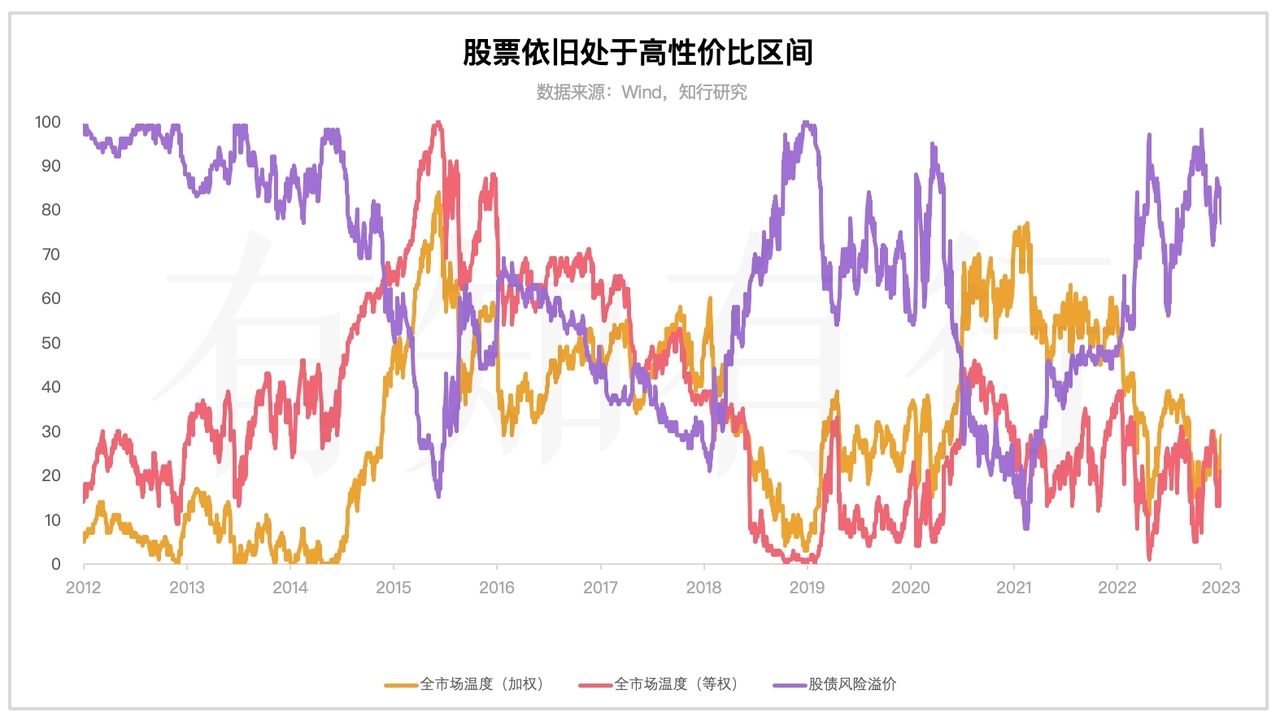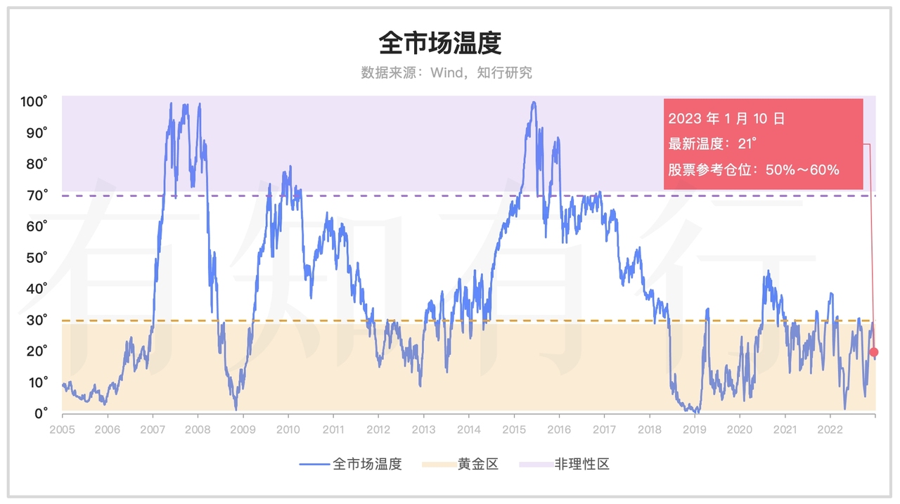 除了温度计板块公布的全市场温度,我们知行研究内部还会监控其他指标,来进行互相印证、查漏补缺。毕竟,没有一个指标是完美的。
