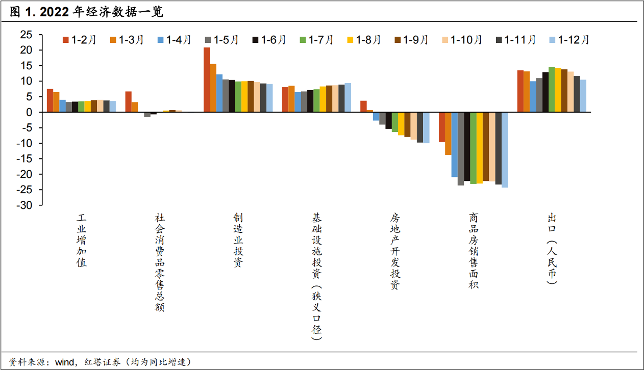 相对来说,地产和消费的数据就不尽如人意了。站在 2023 年年初,去年的经济增长提供了一个很低的基数,我们去年面临的疫情的扰动也逐渐减退,大家对 2023 年的 GDP 增速抱有期待,起码是要高于 2022 年 3% 的结果的。看了上面的数据,如果你是决策者,该如何实现 2023 年的经济增长目标呢?恐怕刺激消费和修复房地产投资,是必选项了。