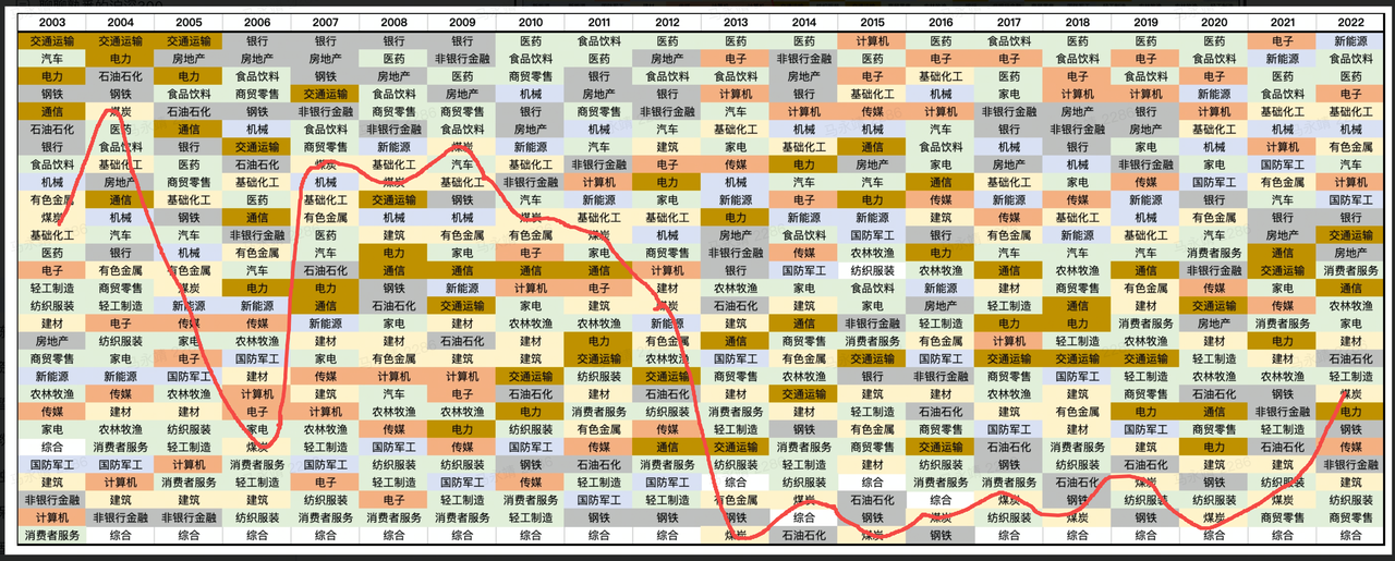 与之形成鲜明对比的是煤炭这种旧能源的代表,之前新能源对于旧能源的取代,煤炭行业出现了很长时间的低谷期,机构持仓也是非常低。在 2021 年时,煤炭的持仓排在倒数第三位,无人追捧甚至是忽视。