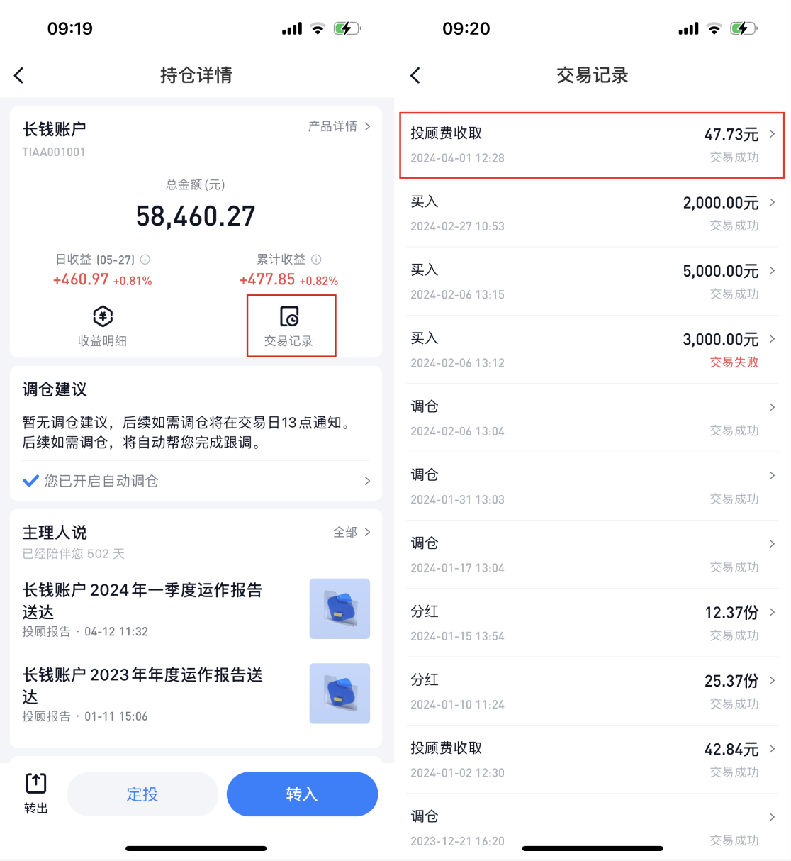长钱账户的投顾费从哪里扣除?