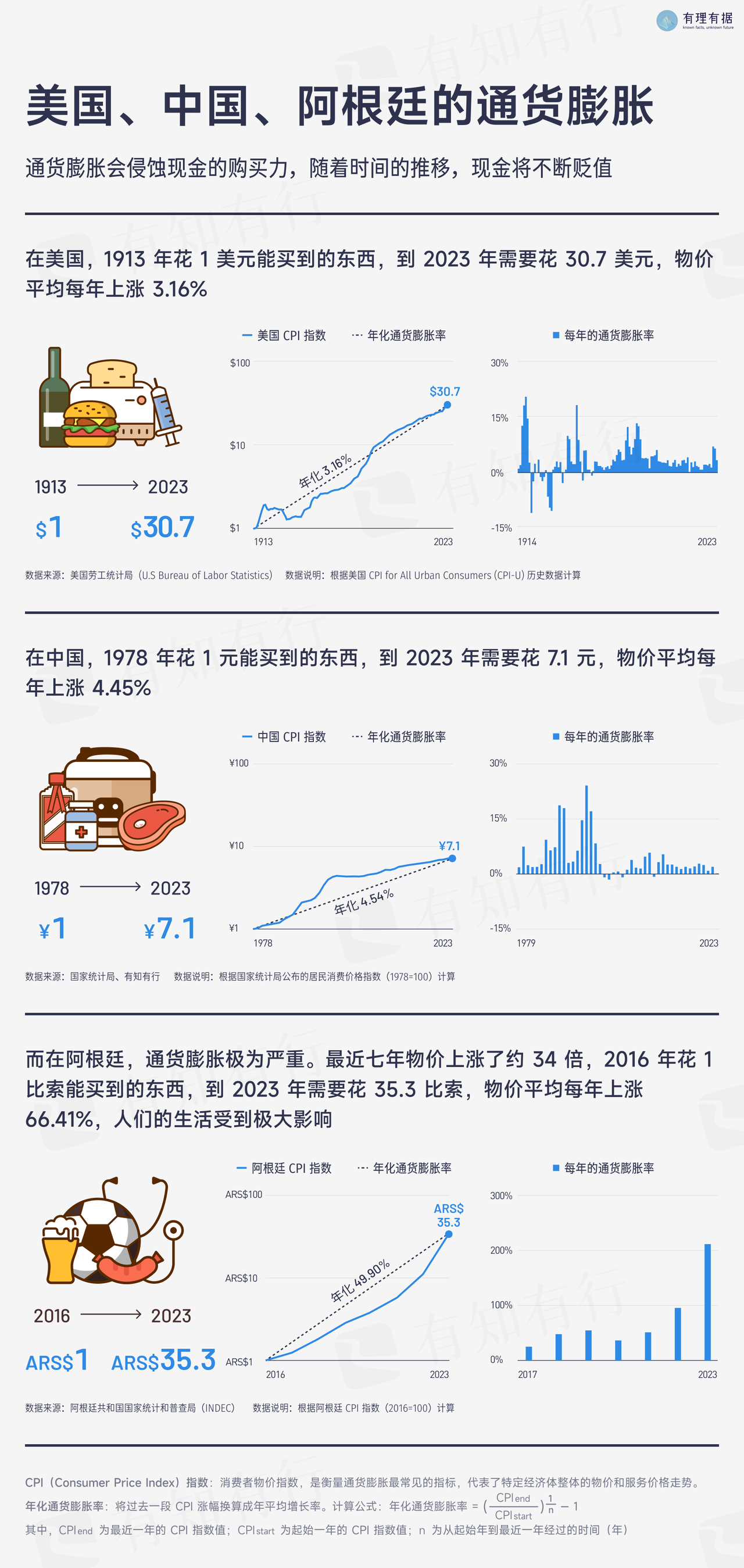 有理有据,终于说到我最怕的东西了,那个伏地魔。 年轻人因为有当下的现金流,通胀对年轻人危害并不大,甚至还是利好。高通胀一般都伴随高经济增长,年轻人机会也更多。 而对于中老年人来说,通胀就是恶梦。 一是看过去,有切身的体会:数据和图表已经说的很清楚了,但是回首往事,刚参加工作的80年代末,一个农民工一天工资是5元钱,而现在,农民工一天是200-300元。我理解就是通胀了40-60倍。 二是想未来,有深深的担忧:随着年龄增大,劳动性收取减少,之前积累的资产,如何抵抗通胀?如何保值增值?非常担忧。 好在有了有知有行,一起成长吧。🙏🏽🙏🏽🙏🏽