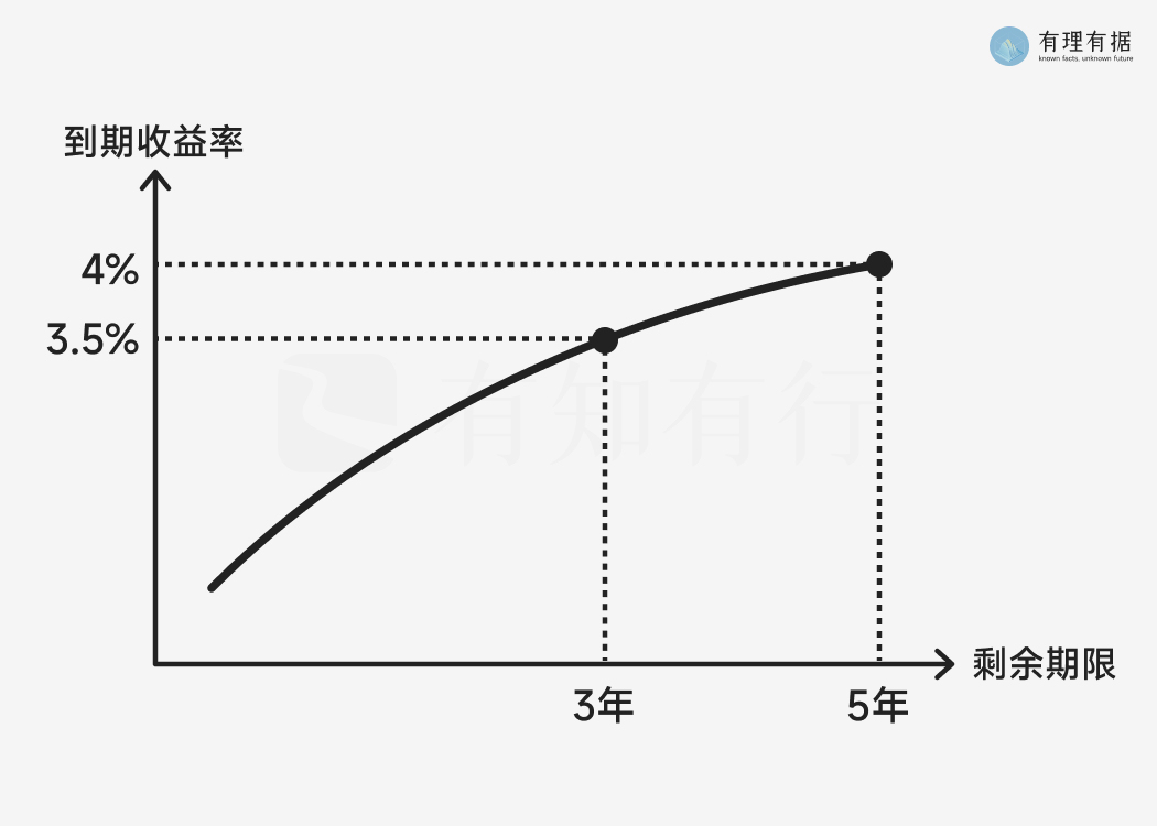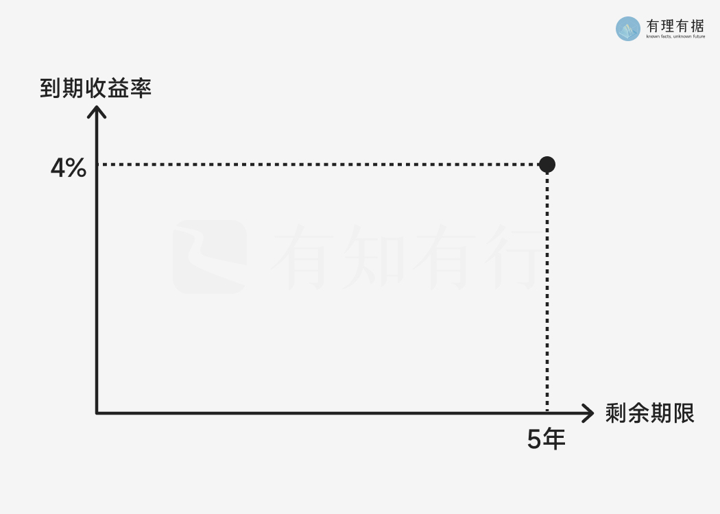 以小理投资时的剩余期限为横坐标,以他持有到期收益率为纵坐标,此时在图上的位置如下: