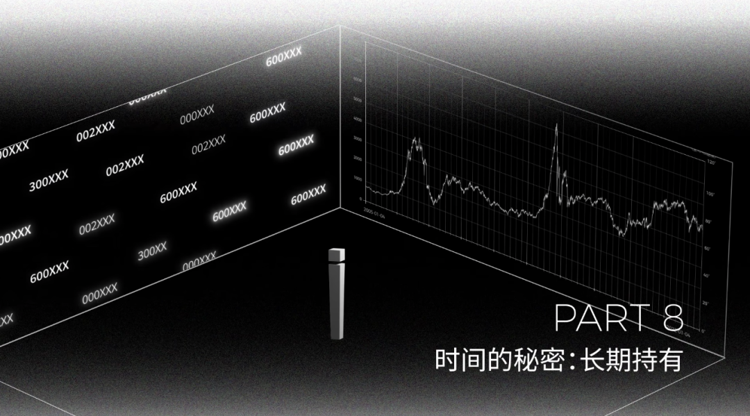 20 年里大约 4800 多个交易日,长期投资的收益仅由涨幅最高的 30 天决定,占比只有 0.6%。投资回报在时间上分布极度不均。如果承受波动是进入股市必购的门票,这至关重要的几天就是我们始终待在市场里的奖励。这就是为什么持仓时间越长,收益率越高的原因。只有这样才不容易错过这些涨幅高的日子。