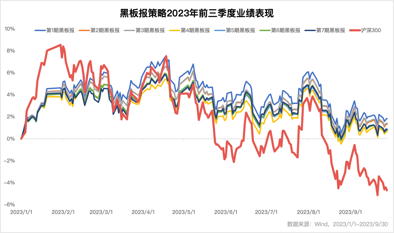 大家好,转眼间 2023 年已经过去了三个季度,在此前我们都阶段性地对黑板报策略做过回顾总结。这次同样,我们来跟大家聊聊黑板报策略在 2023 年前三季度的整体表现。