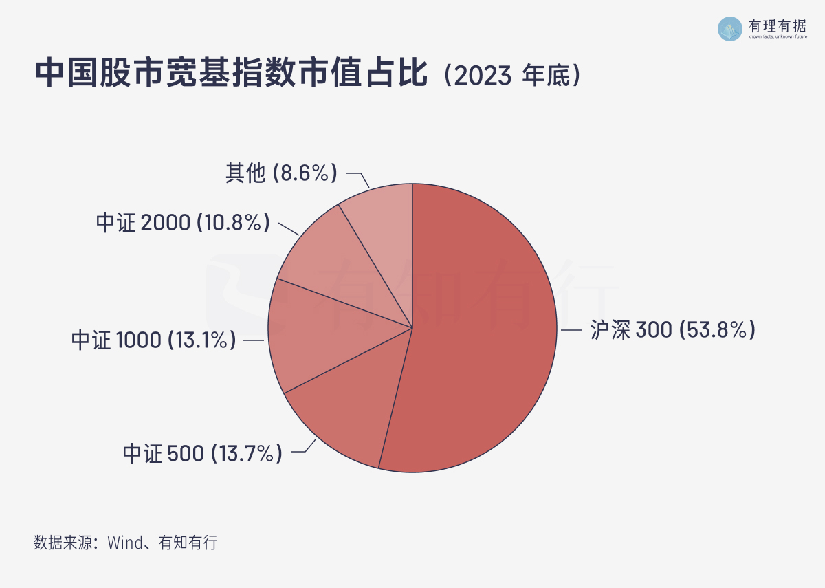 「沪深300+中证500」(或者中证800)的市值占比 67% ,接近 70%,更适合作为大盘股的代表;