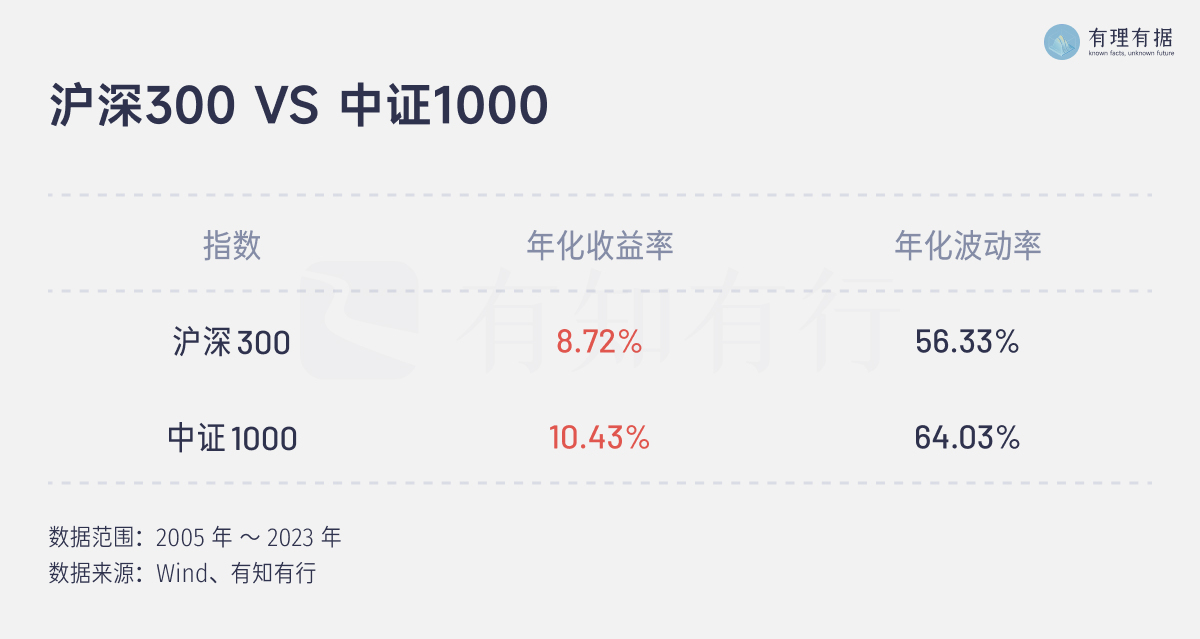 因此,从投资50图的研究目的出发,我们最终决定:用沪深300代表大盘股,中证1000代表小盘股,等适当的时机再用中证2000代表小盘股。