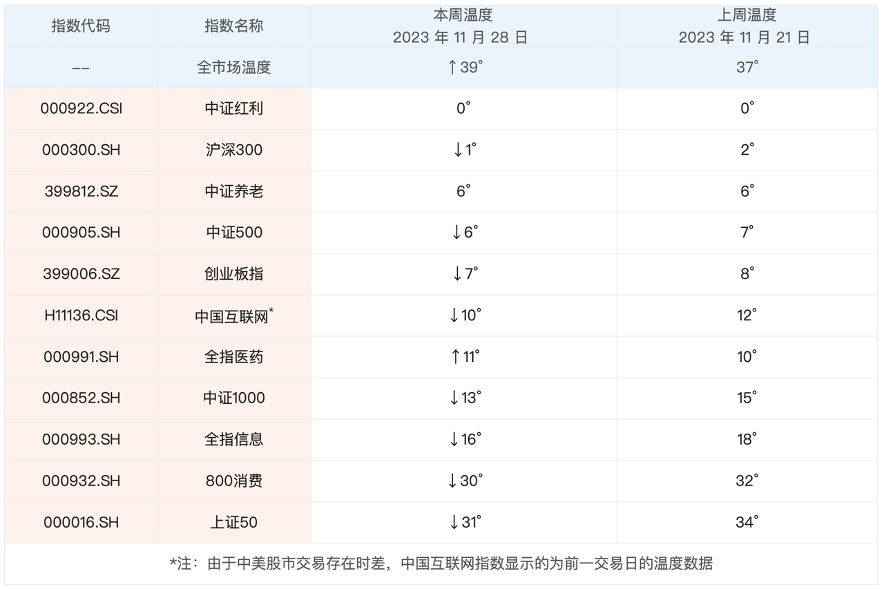 棒棒糖🍭的黑板报笔记: 1- 大小盘风格继续分化: 全市场温度(等权)39°⬆️ 全市场温度(加权)20°⬇️ 沪深300已成为规模指数里的温度最低! 2- 买在无人关注时: ❌ 追加小盘股指数的配置权重, ✅ 慢慢提高大盘股指数的配置权重。 话说,有知有行内部投研支持系统叫哆啦A梦,谁起的?起名小天才!星星眼🤩 3- 12月中证红利又要调整成分股啦~ 开心🥳 4- 补一句:如果是定投长钱账户,看等权和加权温度计都不太合适,首先因为长钱账户已经按照温度计在操作了,叠加效果不一定好,其次因为长钱账户是一篮子不同的基金每一个都有自己的温度。所以认同理念的话直接随时定投就可以。 如果是定投单一基金那么就看那个基金对应指数的温度,但要注意单一指数的风险,合理配置。🦄️🍭 @认识有知有行的第1233天