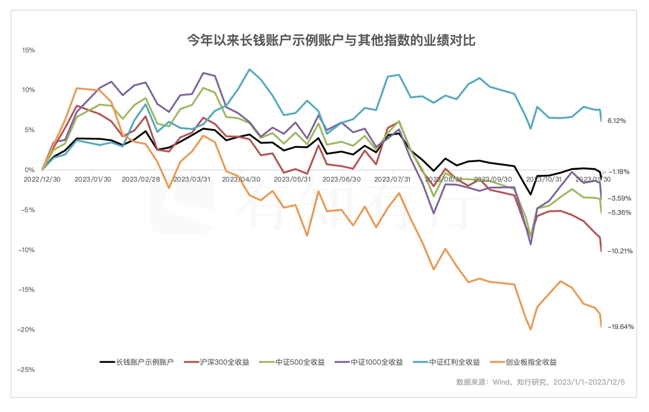 这么一总结,发现这些就是长钱账户采用的帮助大家长期投资的主要方式。这两年,长钱账户相对于市场主要指数,相对于自己的业绩基准,整体回撤控制的很好,主要也是采用了上述方式的结果。