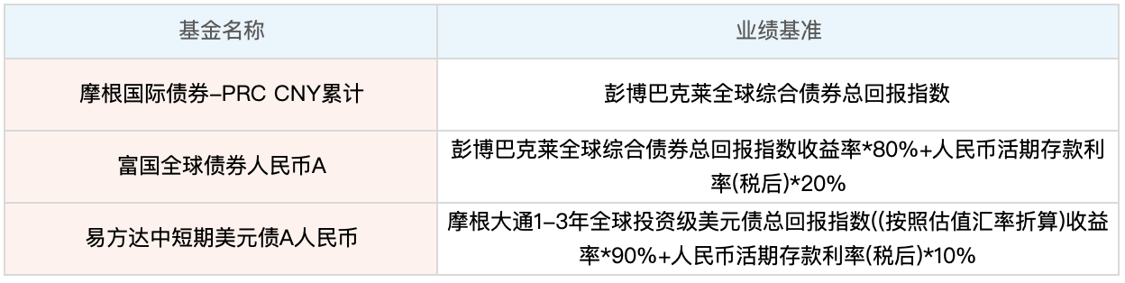 通过业绩基准,我们可以知道这三个基金的主要投资范围是全球投资级债券。