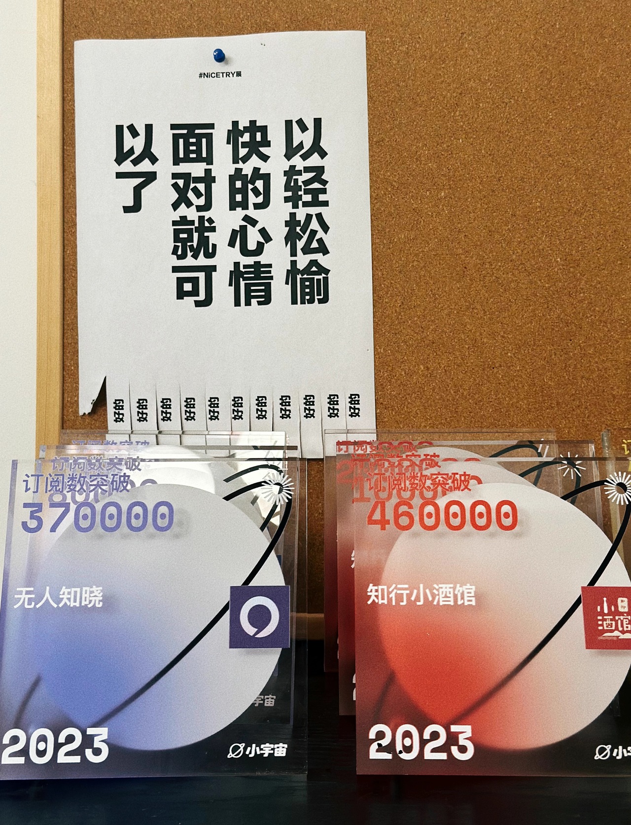 作为黑板报专栏作者的我,每周二都会在播客录音室来写文章。这里是我司最温暖、最安静的所在,每周二都被我霸占。这次在准备数据资料、看着股市下跌的过程中,偶然抬头,看到了墙上新贴的那句话:以轻松愉快的心情面对就可以了。顿时,紧张焦虑的心情荡然无存,与君共勉。