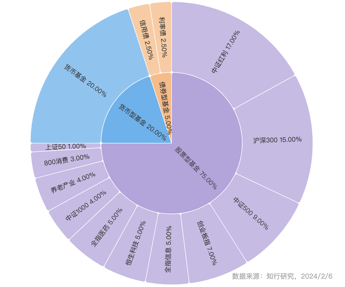 我们看到,面对这种市场情况,长钱账户今天上午触发了临时加仓的信号,调整了「新钱买入配置比例」,将股票类资产的比例从 73% 提高到了 75%,增加的仓位分别给了中证1000和全指信息。值得注意的是,这已经是长钱账户投顾版面向用户以来,推荐用户配置股票类资产的最高比例了,从侧面也说明当下市场的底部位置。