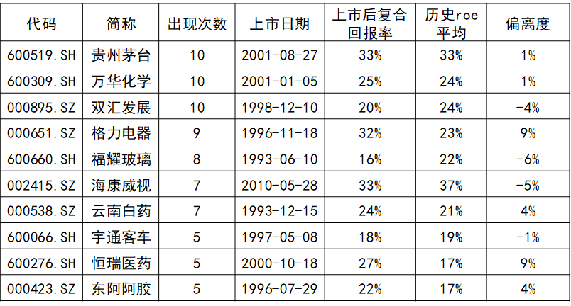 把指标调高,「ROE 五年平均值大于 20%,最低值大于 15% 」走一波。