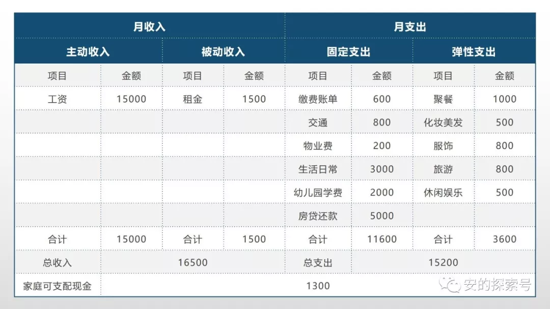 如果你想理财,就一定要知道一个家庭每个月的收支情况,这样,你才能知道有多少钱可以拿来理财。