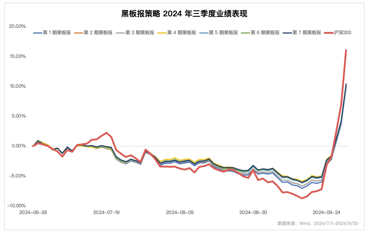大家好,转眼间 2024 年三季度已经过去,股市在整个三季度经历了大幅下跌之后快速反弹的行情。这次,我们通过三季度回顾的形式来总结黑板报策略在 2024 年三季度的整体表现。