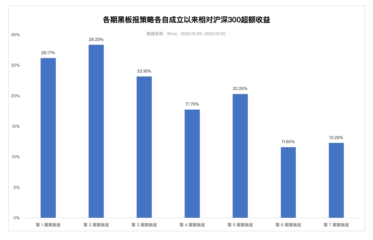不止第 1 期黑板报和第 4 期黑板报,长期来看,各期黑板报策略从各自成立以来,相对于沪深300指数,均有着一定的超额收益表现。权益投资更多着眼于长期的业绩表现,阶段性的市场风格演绎并不会是市场的常态,更重要的是坚持均衡配置,同时学会合适的仓位控制,在长期才会表现出稳定的超额收益。