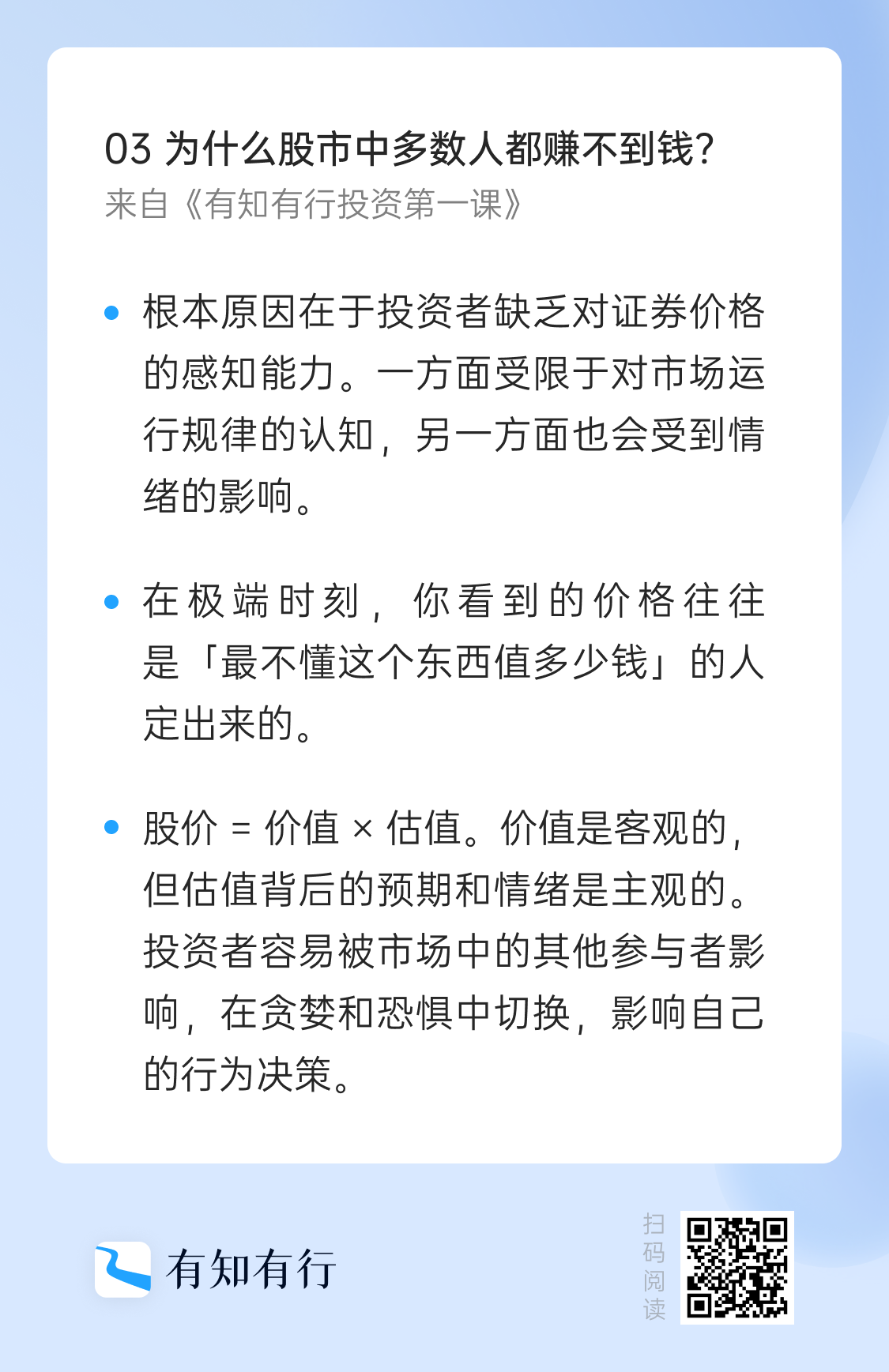 欢迎来到《有知有行·投资第一课》,这是我们的第三讲。