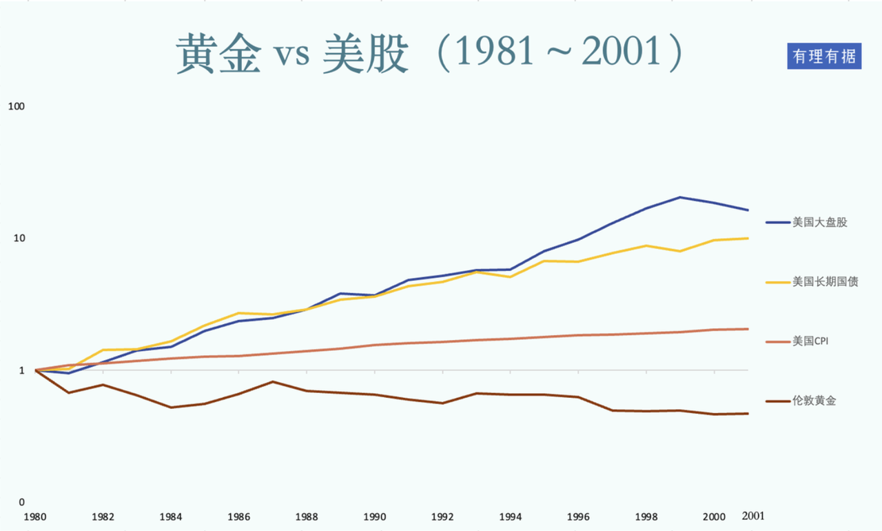 我在美国大概 90 年代末开始这个工作,当时我工作的很大一个板块就是收集并研究这些历史数据。开始研究黄金时,美股和美债如日中天。面对黄金,我不禁疑惑,究竟什么样的人会投资这样一种二三十年都不上涨的资产?