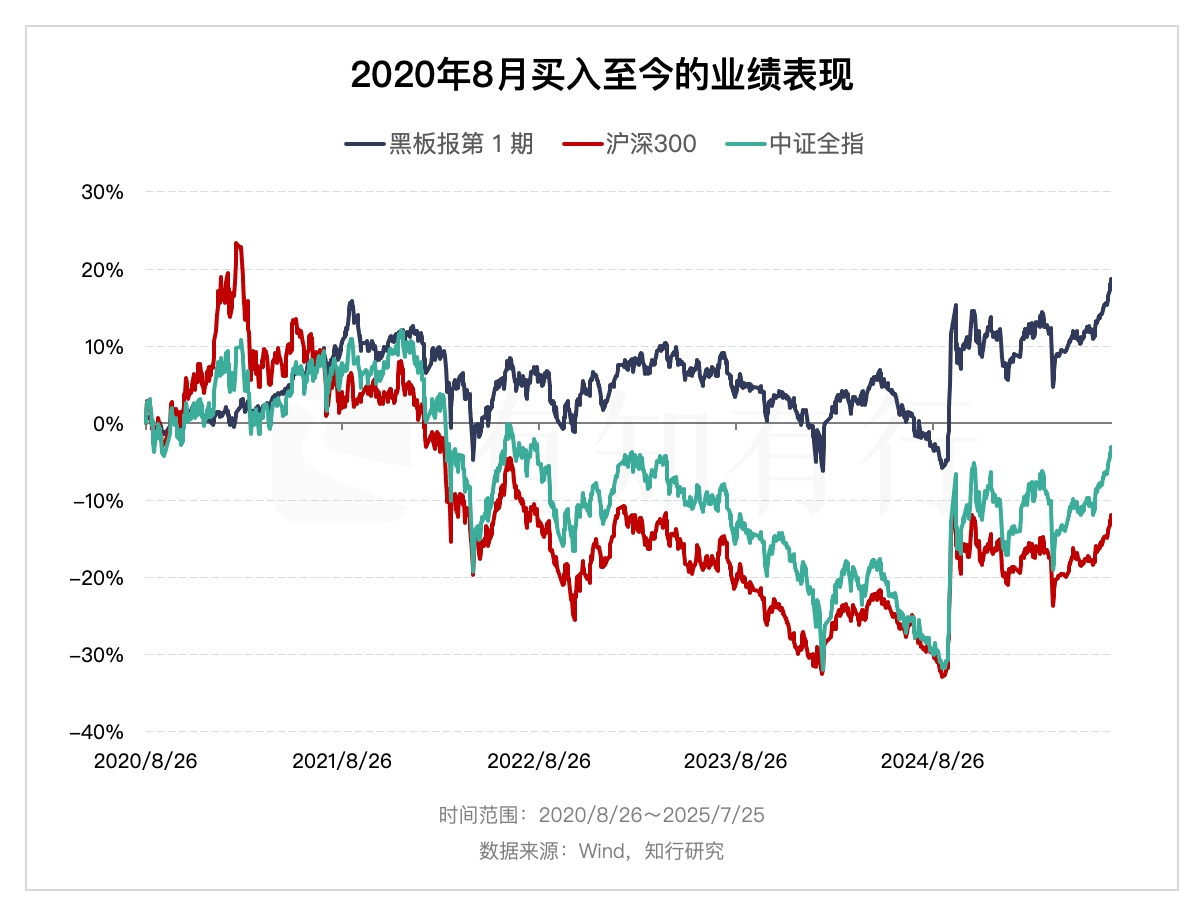 可能这么说,大家的感受没有那么强烈,我们今天来一波回忆杀,回看过去五年的市场以及投资操作情况。五年前,知行黑板报专栏成立,以周度更新的方式,一方面介绍市场的情况,另一方面基于有知有行的投资体系,给出大家当下适合的股票基金仓位以及具体投资品种的配置比例,建立了黑板报组合。这个过程从 2020 年 8 月开始一直到 2022 年 11 月,长钱账户正式上线。自此之后,大家可以直接购买长钱账户,来投资A股。