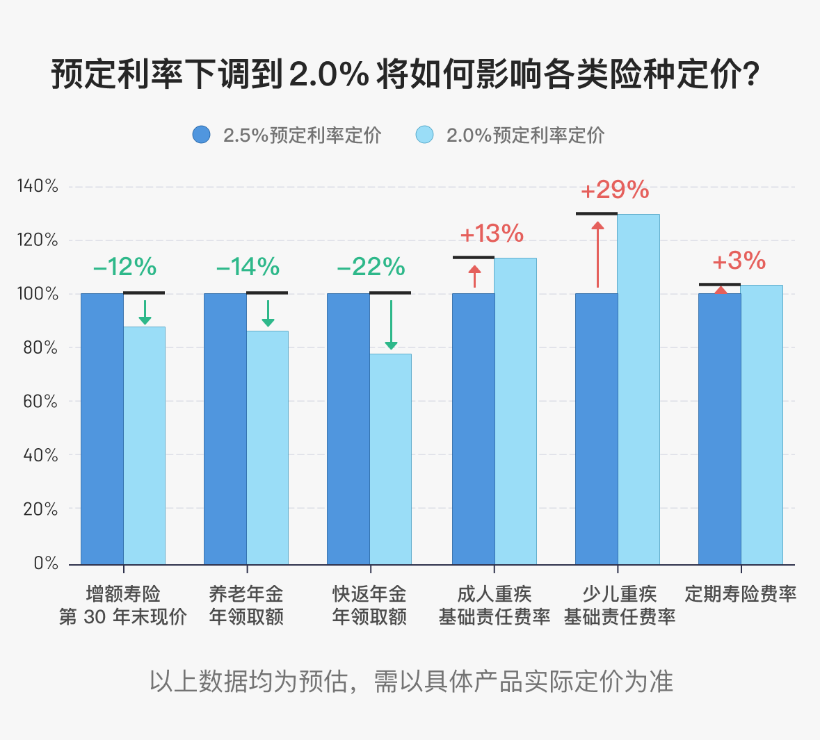 我们的合作伙伴也做了测算,用数据直观展示了本次下调对不同险种的影响: