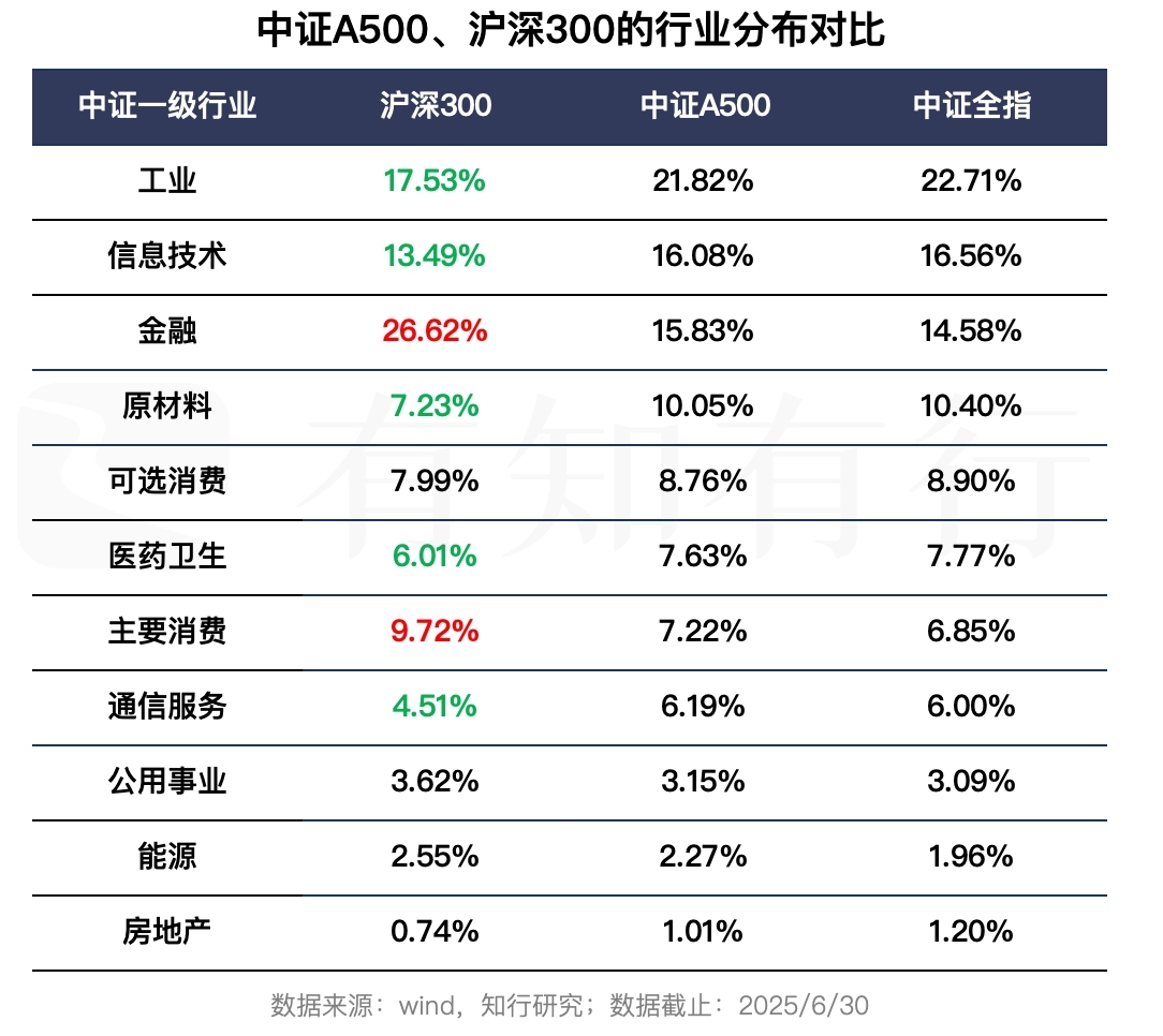 #棒棒糖🍭的黑板报笔记 第259期 1- 招商策略统计了今年增量资金入市的主要渠道:融资余额持续活跃、私募基金规模持续攀升、以及个人投资者开户数活跃。 在具体持仓偏好上,今年股票型 ETF 中, 规模指数 ETF 持续流出、行业主题类 ETF 加速流入。受到追捧、买入规模较高的行业主题 ETF 包括机器人、人工智能、细分化工、科创 AI 等今年的热门板块,行业主题类 ETF 成为投资者参与各类主题行情的重要工具。 2- 中证A500和沪深300区别主要在行业配置上。 沪深300选择全市场排名前 300 名的股票组成成分股,并不做严格的行业限制。中证A500采用了行业均衡的选样方法(保持指数成分股的行业市值分布与中证全指尽可能一致),从各行业选择 500 只市值规模较大的股票作为成分股。 以今年 6 月底为例,沪深300 (相比于中证A500而言)超配了金融和主要消费,少配了工业、信息技术、原材料、通信服务、医药卫生。而这些少配的行业,今年尤其是 7 月以来,涨幅明显。这造成了二者今年业绩的差异。但拉长时间来看,沪深300和中证A500不仅涨跌周期一致,长期的业绩表现也是相似的。 @和有知有行一起长大的第1899天