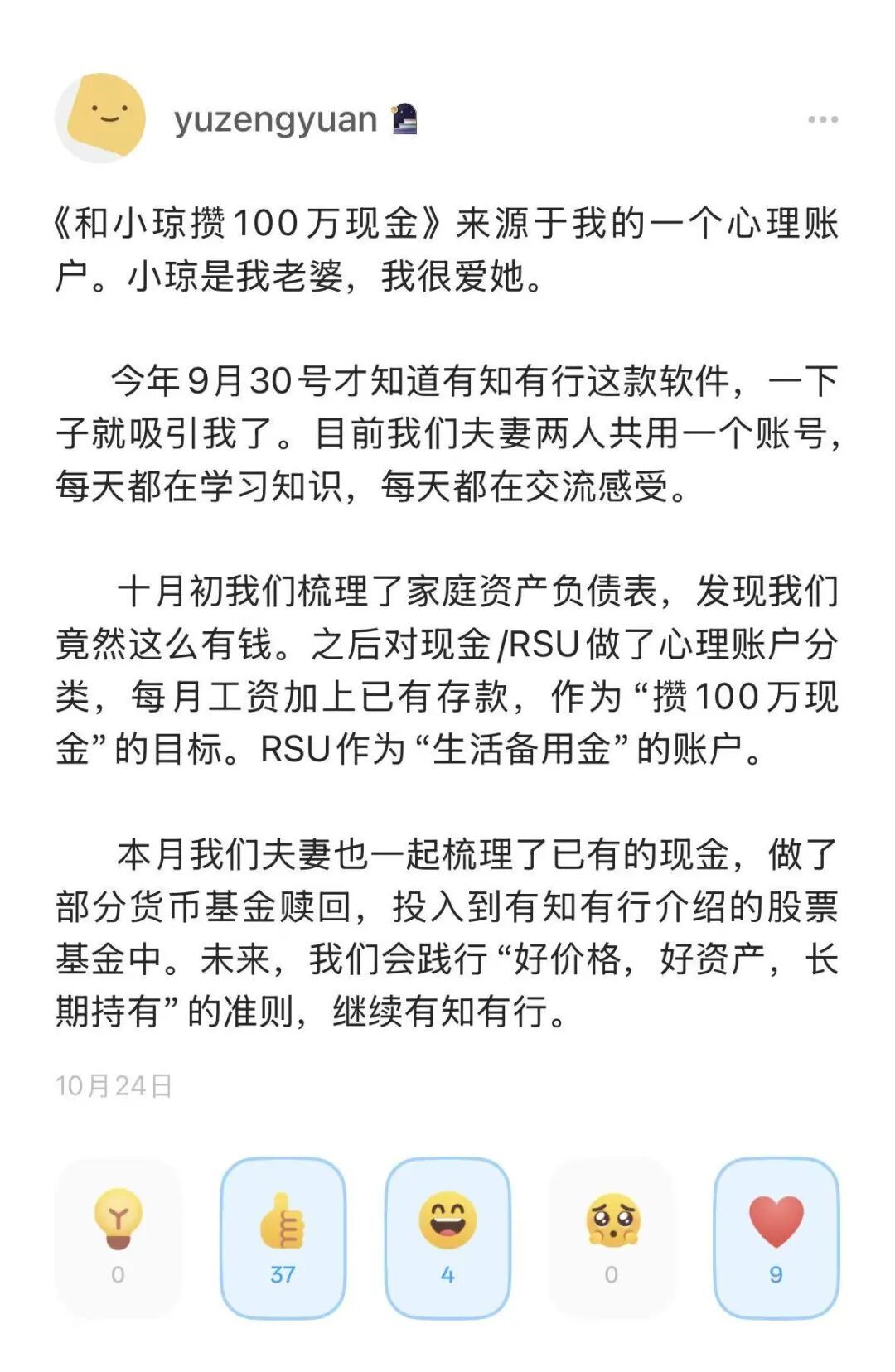 机缘巧合,上一期的存钱挑战里,心理账户主人 @yuzengyuan 来留言了。是一对感情很好的夫妻,而且其实刚认识有知有行不久。