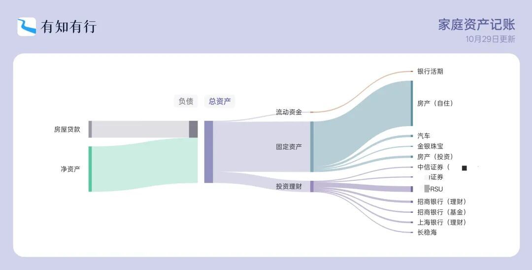 zengyuan 和小琼在今年 9 月 30 日才在小红书上看到推荐,认识了有知有行。最吸引他的,是那张能清晰展示家庭资产分布的桑基图。