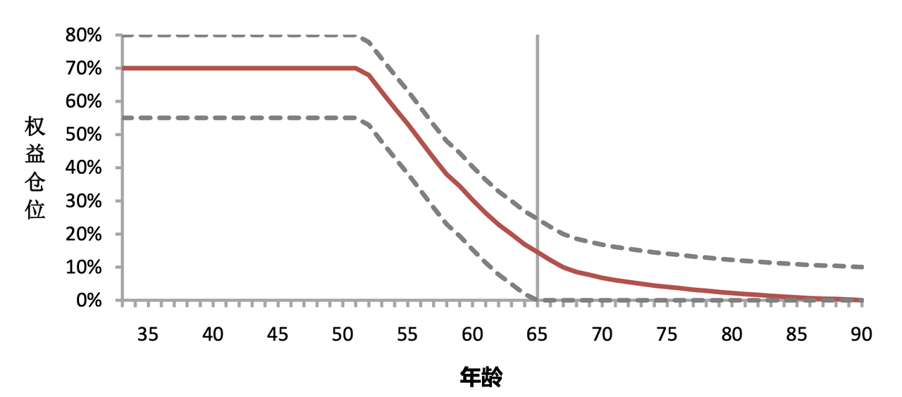 随着退休时点的临近,目标日期基金会渐进式降低权益类基金的占比,增加固收类基金的产比,实现风险承受能力和资金用途的匹配。下面是示意图,大家可以查看每只基金具体的招募说明书进行了解。