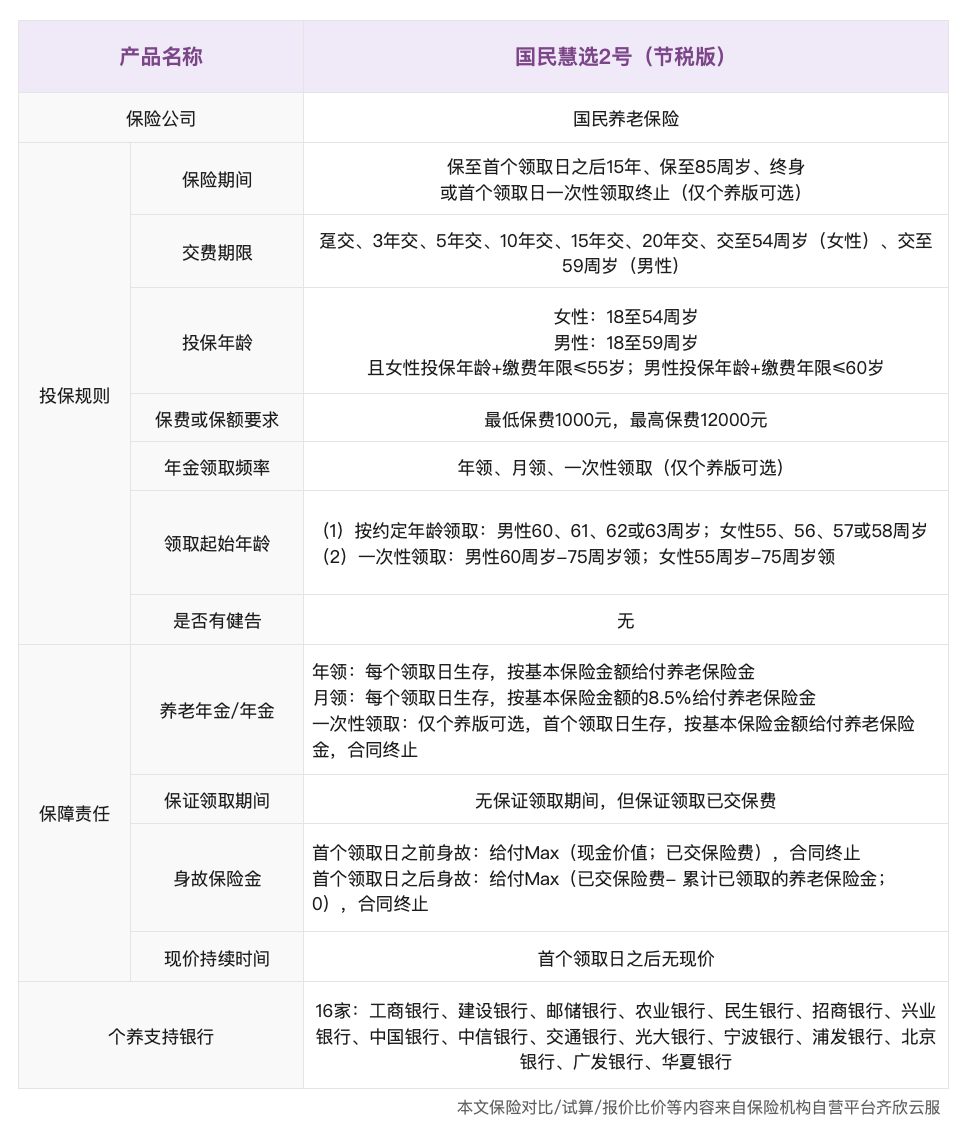 产品链接:国民慧选2号(节税版) 养老年金保险