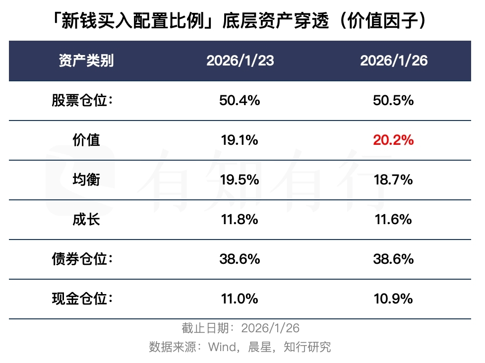 接下来我们来看一下本周长钱账户的操作情况。本周一(1 月 26 日),长钱账户结合今年以来市场情况,调整了新钱买入配置比例。这意味着,如果你当下投入一笔新资金,会按照最新的比例去配置。具体变动见下图。需要再次提醒的是,上述变化仅仅针对当下有一笔新的资金要买入的情况,已经持有长钱账户的用户,不做调整。