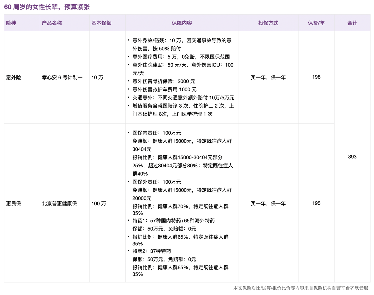 这个方案的年度总保费仅393 元,适合预算非常有限的家庭。