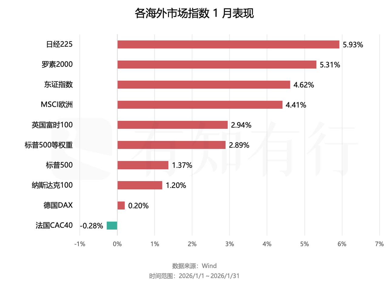 首先回顾一下 2026 年 1 月海外市场的表现。