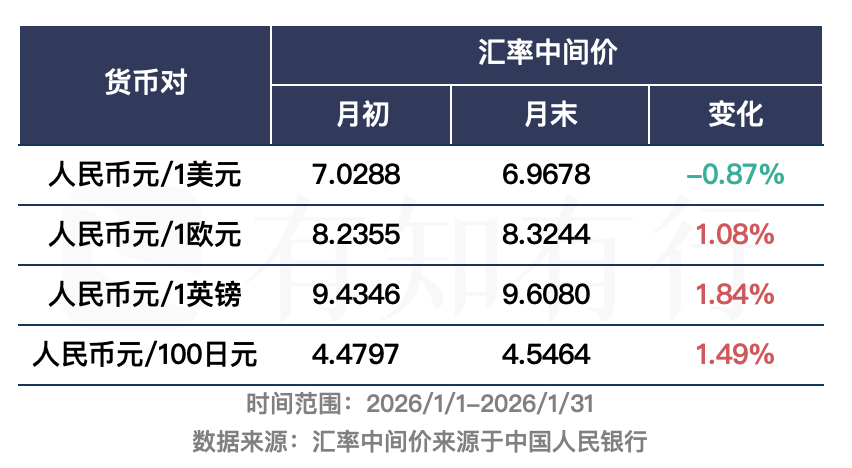 汇率方面,1 月人民币相对于美元来说,是升值的;相对于欧元、英镑和日元来说,是贬值的。人民币 1 月相对于美元升值,对我们投资美元资产的 QDII 基金来说,业绩会构成一定的拖累。相对应的是,人民币相对于欧元和日元贬值,则对我们投资欧元、日元资产的 QDII 基金来说,业绩有所助益。