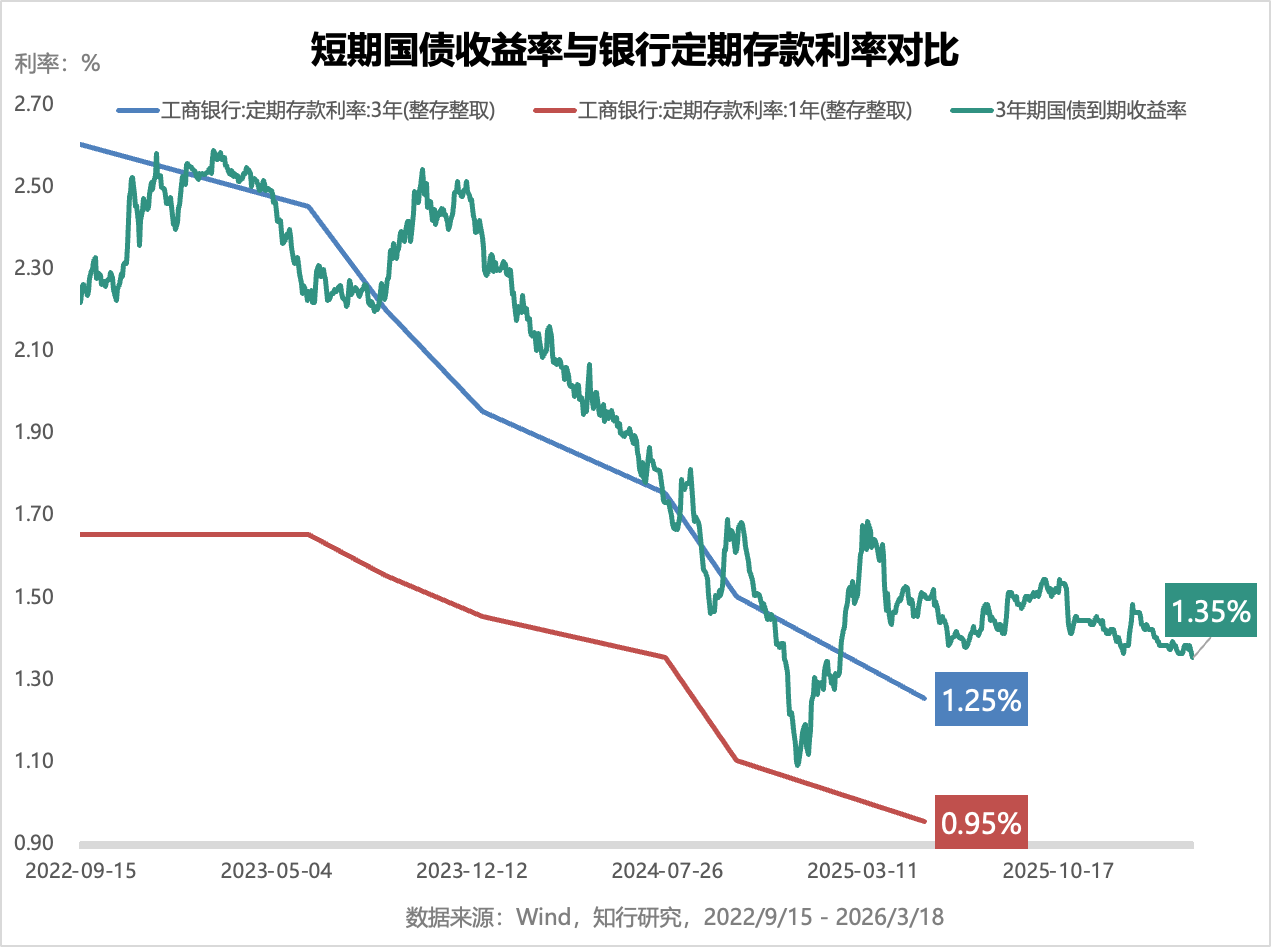 当初三年期还能有 2% 多,现在再存,只剩 1% 出头。同样一笔钱,放三年,利息少了好几千块。有点不甘心,但好像也没什么更好的办法。
