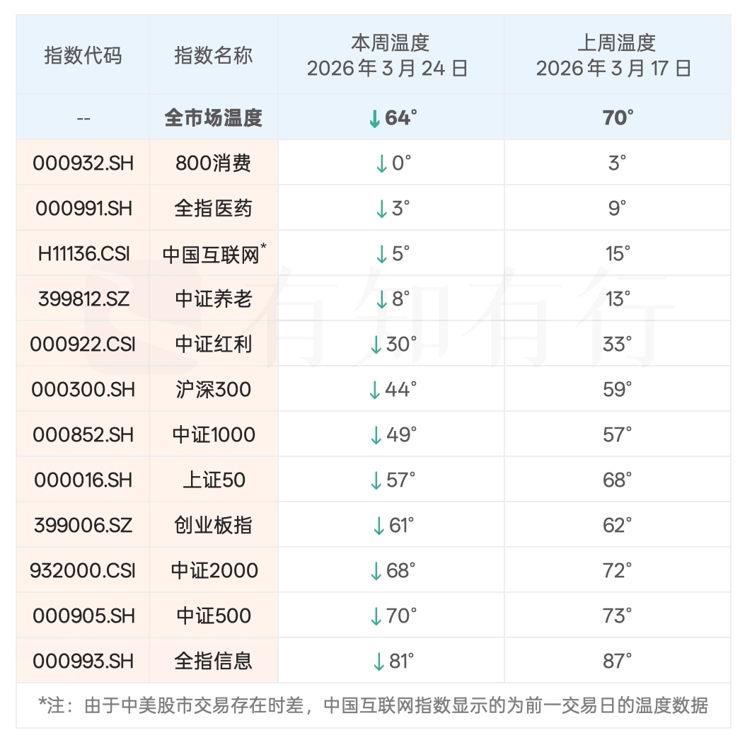 具体指数方面,无一幸免,所有指数温度都出现了下滑。中小盘指数和行业主题指数,整体来说,下跌幅度会更大一些。至于下跌原因,中东地区冲突的升级是导火索,投资者的恐慌情绪导致的卖出,进一步促使了市场的下跌。中东局势走向何处不得而知,会不会带来全球经济的滞涨,在多大程度上影响咱们自己国家的经济基本面情况,都仍需观察。