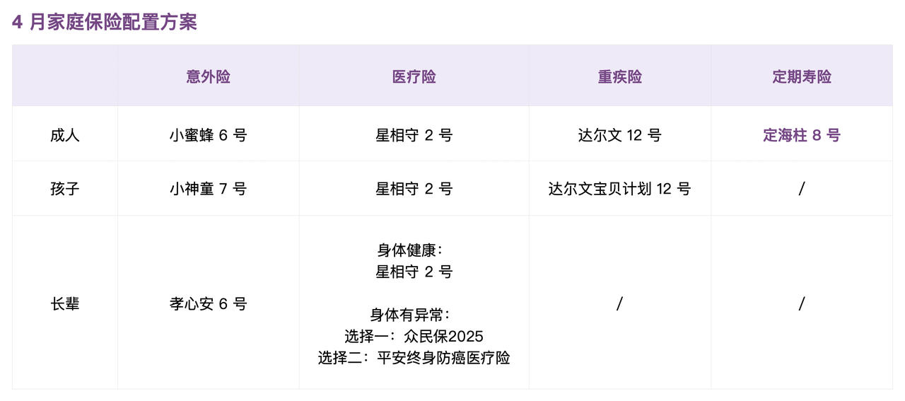 另外,4 月有清明和五一两个假期,不少朋友会选择外出旅行。如果你的行程里有滑翔、潜水、攀岩等刺激项目,或者有出国计划,建议提前查一查是否需要单独配一份旅行意外险 👉 《出行前,有必要买旅行意外险吗?》。
